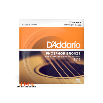สายกีตาร์โปร่ง D’Addario EJ15 .010-.047 Phosphor Bronze Extra Light